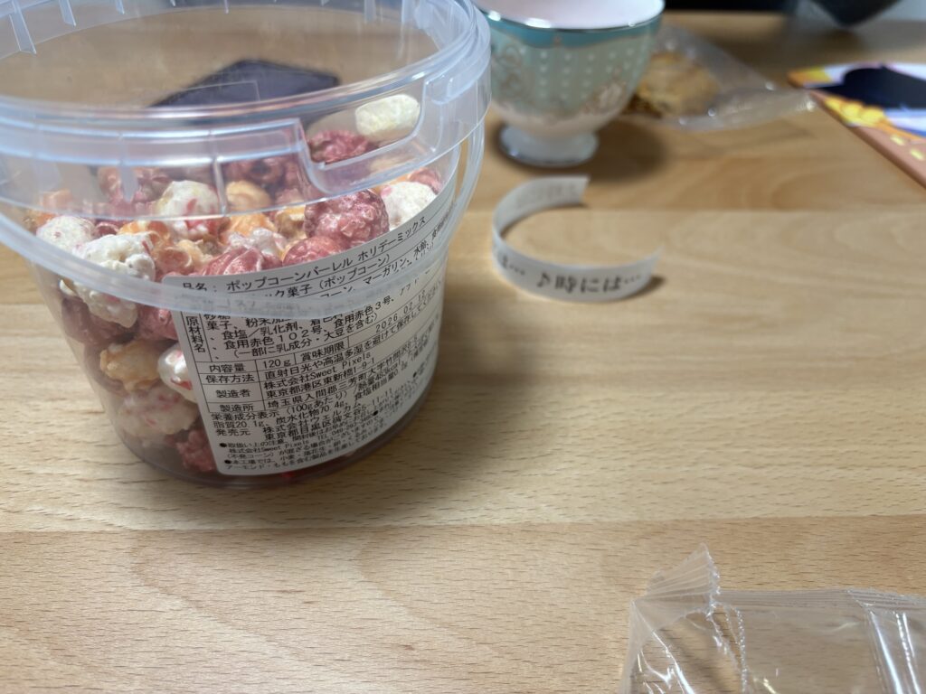 おいしポップコーンを食べながら紅茶飲みながら、話したりスマホいじったりした。ここの姉の家にはテプラをプリントできる機械があって、もう一人の姉がここに来ていた理由は「♪時には…」のテプラを新しく入手するためらしかった。姉は白日がやたら好きで、以前ここで「♪時には…」というテプラをたくさん作ったらしいのだが、スマホケースに貼ったり職場で配ったりしていたら、もっと必要になったそうだ。