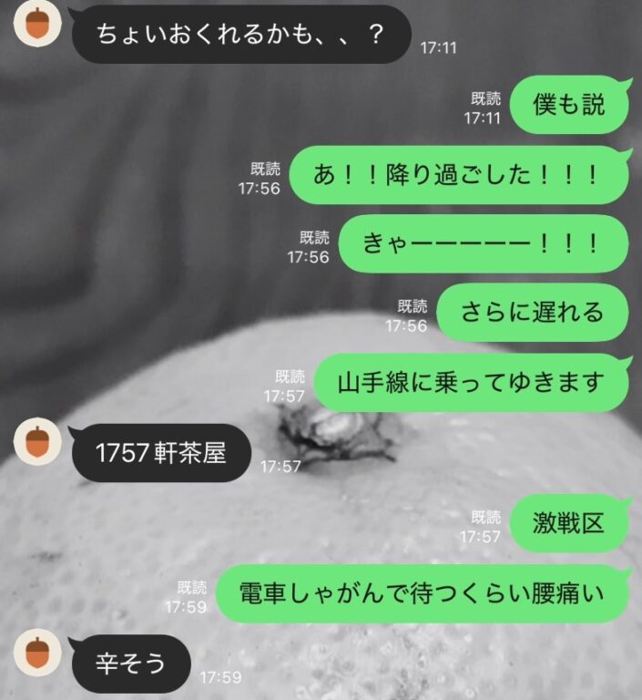 コーチャンフォーでパートナーと別れて、僕は電車に乗って渋谷に移動した。↑のインタビュー計画をさっそく実行しようと思って、友達のpを晩御飯に誘っていた。今日動きすぎ。ほぼ寝ていないのに各地を動き回ったので、腰が激烈に痛かった。通常の体勢を維持できなくて、駅のホームではしゃがんで電車を待っていた。