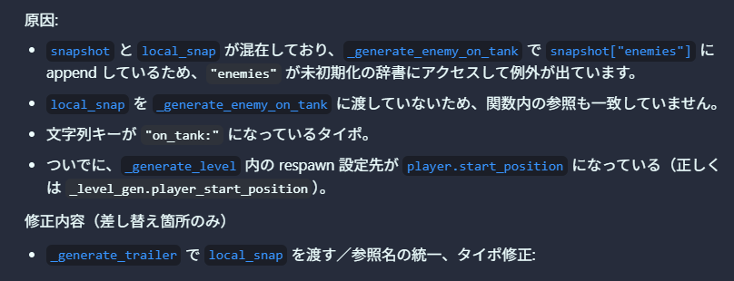 死亡時に最新のチェックポイントからリトライできるよう、ステージの状況を保存する仕組みを作ってる。3時間半ほど作業した。エラーのまま閉館時刻を迎えてしまった。帰ってから家で続きをやるか?