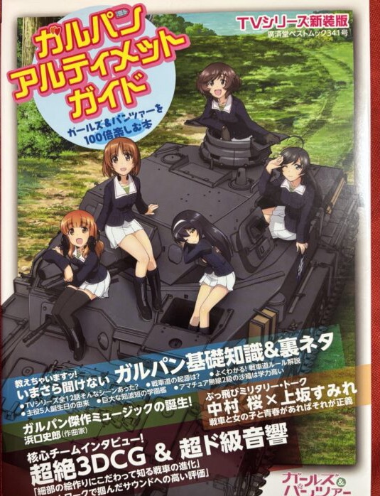 見終わったあと『ガルパンアルティメットガイド』を渡されたので読んだ。女子のたしなみとしての戦車道の歴史や、学園艦が存在する理由、競技続行不能フラッグ(判定装置)の仕組みなど、嘘がたくさん書いてあって面白かった。「戦車道の公式試合のなかで建物が壊れてしまった場合は全日本戦車道連盟がその修繕費を保証するため、砲弾で自宅を破壊された人は『これでうちがリフォームできる』と喜ぶこともある」という設定がよかった。