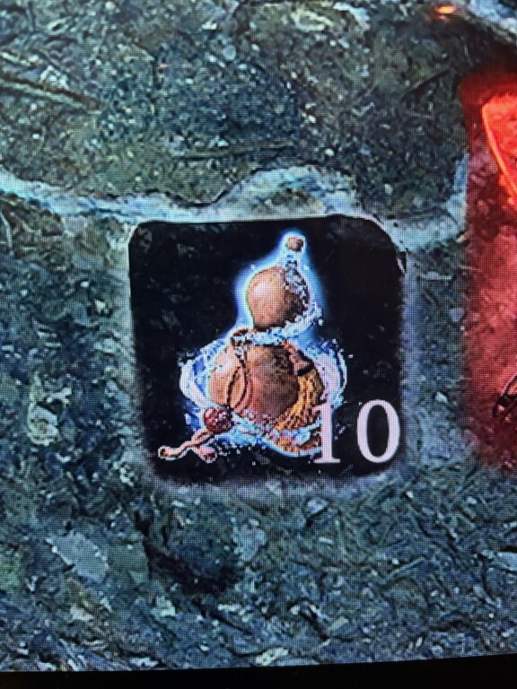ひたすら死んでは再挑戦を続けていたら、あるとき寝室からパートナーが現れて、テレビ画面の左下を指さした。HPバーの下に常在している、赤いアイコンを指していた。何、これ? パートナーは「これ、このマークあると敵強くなっちゃってるらしい」と言った。エ。どうやらそれは「厄憑」という状態であることを示すアイコンらしく、これがあるとゲームの難易度を上がるらしかった。これは持ち物を使えばいつでも解除可能で、高難易度プレイを楽しみたい人が利用するモードのようだった。そんなことぜんぜん知らなかった。ウワーそういえば、仙峯寺の鐘を撞いたときにそんな説明書きを見たような気がする。忘れてたな。まったく意識してなかった。