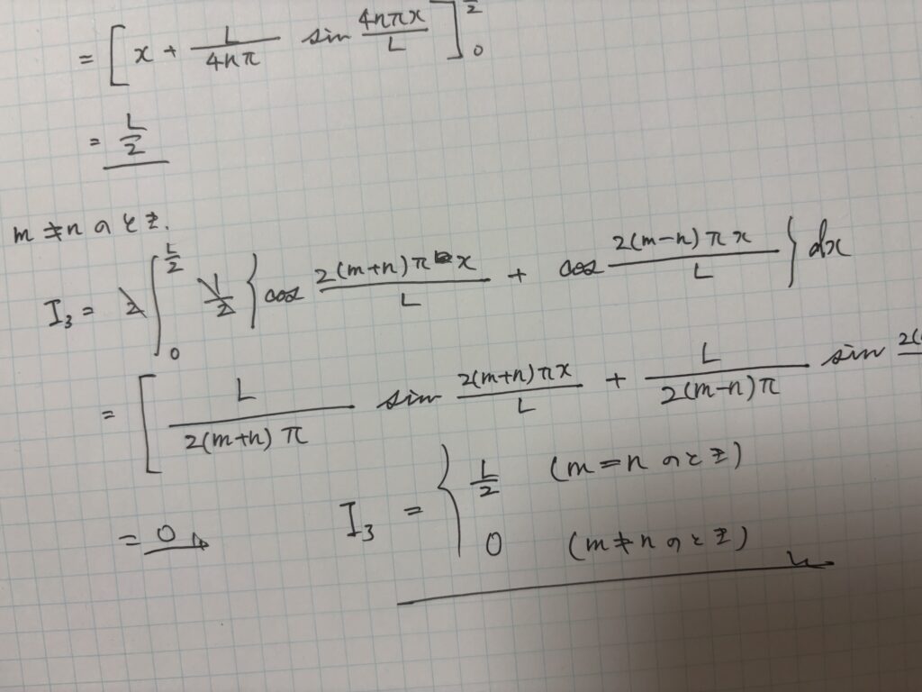 フーリエ級数展開というのをやった。マクローリン展開の周期関数バージョンと考えたらいいのか。関数を無限級数で近似しようという理念は、高校数学のときにはなかった新しい考えかただなあ。展開の各項の係数は、マクローリン展開では微分を繰り返すことで得ていたけれど、フーリエ級数展開ではなんか特殊な三角関数の積分を掛け合わせて、目的の係数をもつ項以外を、都合よく0にすることによって得られる。なぜこんなアクロバティックな操作が思いつくのかわからないけれど、そういうものだと受け入れるしかない。加法定理や円の面積だって、自力で思いつけたわけではない。初めからずっと先人の肩の上に乗っている。