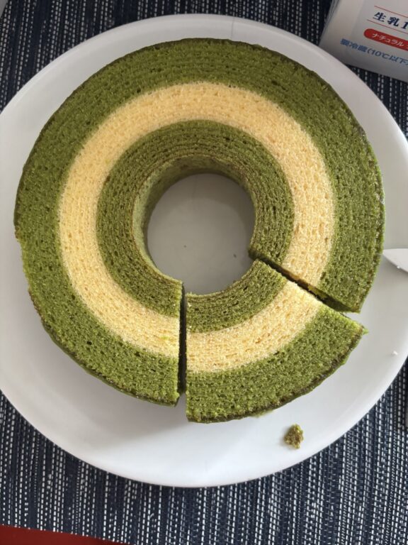 パートナーがお土産に買ってきてくれたバウムクーヘン。3Blue1Brownのロゴみたい。数学の練習問題やってたせいで、バウムクーヘンを見ると「積分…」と思ってしまう。