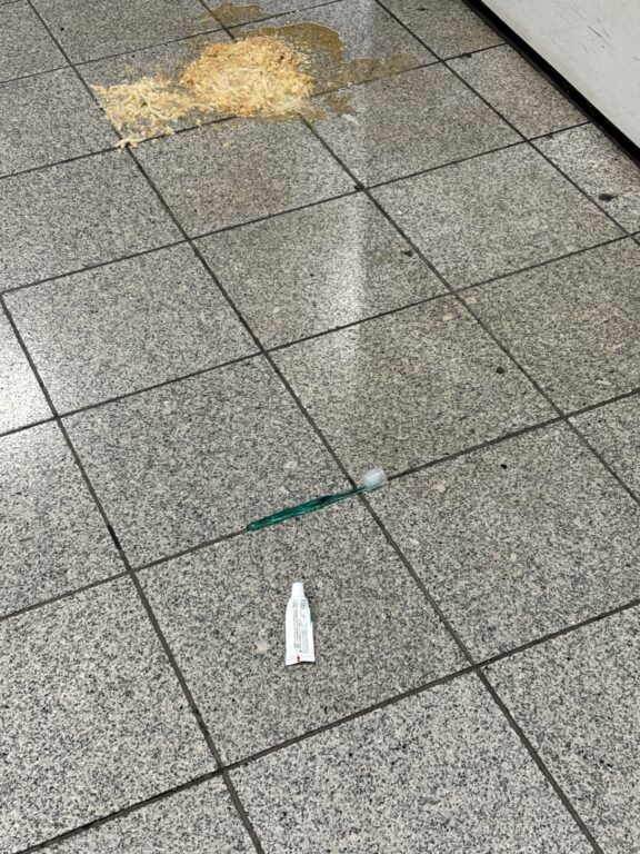 しかもすぐそばに歯ブラシと歯磨き粉が捨ててあった。この人ゲロ吐いた後にその場で歯磨いたのか? 几帳面な性格。