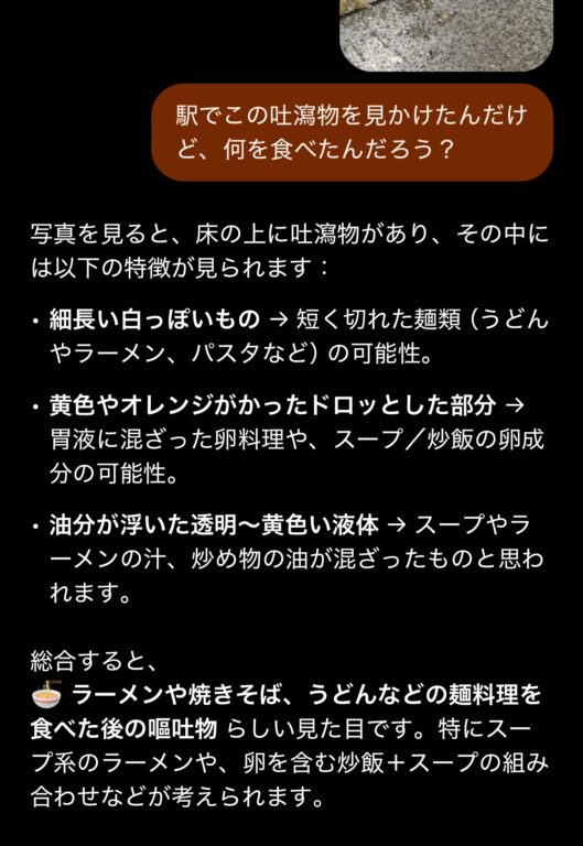 ChatGPT的には「🍜ラーメンや焼きそば、うどんなどの麺料理」とのことだった。