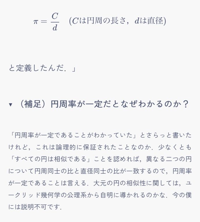 なぜならこのように、そこらじゅうで「これって自明なのか?」という疑問が湧いて、思考が躓いてばかりだったから。辿っていくと公理系とかの説明になりそうになりそうで、でもそこまでいくと僕自身が知識不足だった。それに、もう少し自分の中で\(e\)の複素数乗の意味性を理解してからやりたいなと思った。