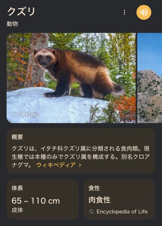 クズリというらしかった。タイガやツンドラに生息。知らない生き物がまだまだいるなあ。