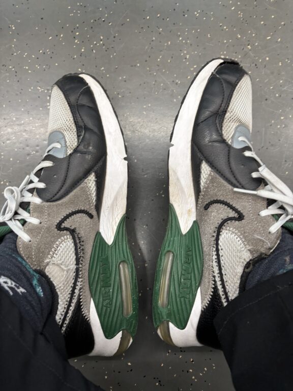 今履いている靴。2022年の8月にパートナーがくれたもの。ずっとこれを履いていた。かかとがすり減ってガシャガシャ鳴るようになった。つま先も割れて水が入るようになった。これを受けて、今日パートナーが誕生日プレゼントとして新しいものを買ってくれることになった! ありがとう。この靴も、今までありがとう。
