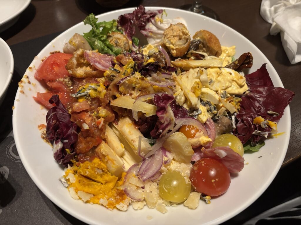 夕飯は素敵なシュラスコの店だった。シュラスコって初めて食べた。↑これはサラダバイキングで取りすぎて自滅した皿。
