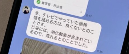 祖母の友達から送られてくるLINE。「今、テレビでやっていた情報 唇を舐めるのは、良くないとのことです。だ液には、消化酵素が含まれているので、荒れるとのことでした。」いい文章だ……。祖母は文字入力ができないので、すべて既読無視している。