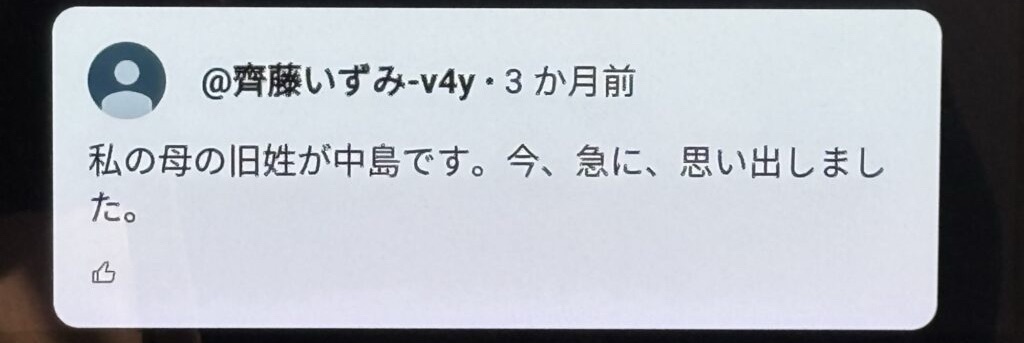 私の母の旧姓が中島です。今、急に、思い出しました。