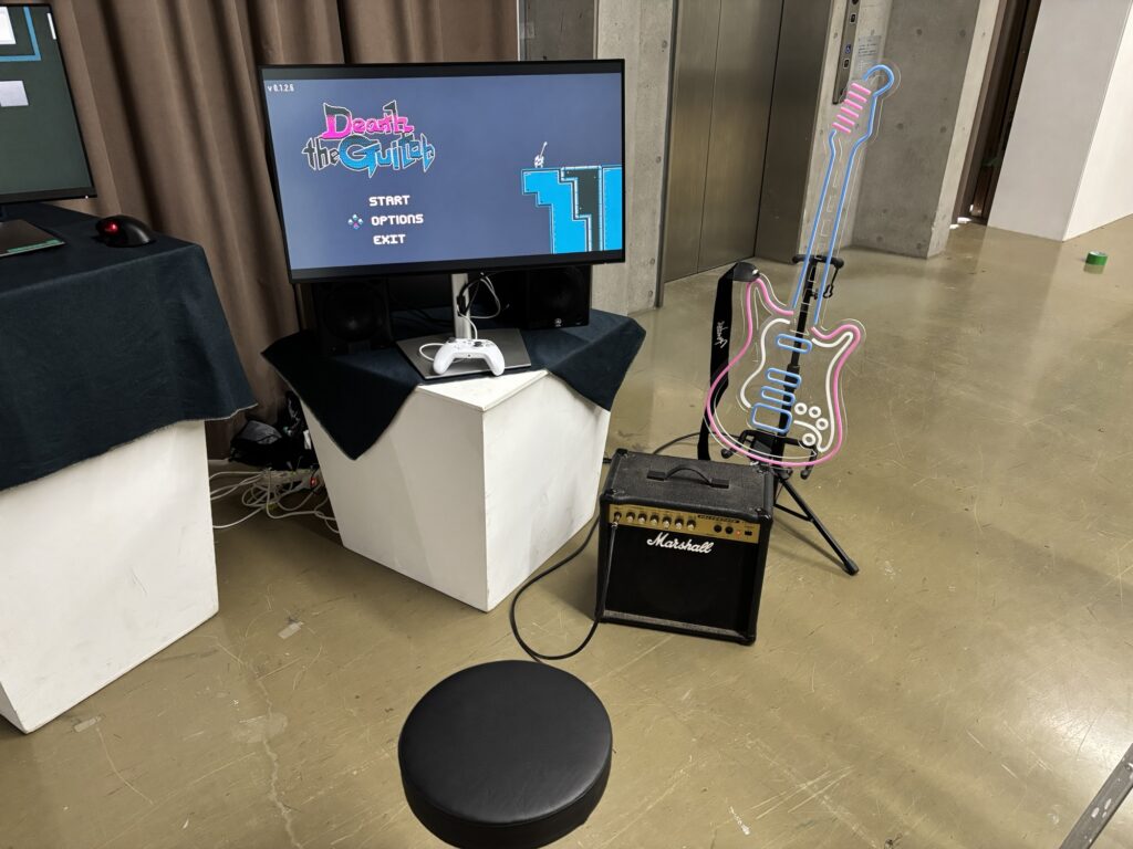 自分の講評はまた後日。自分のブースを設営していたら、通りがかった講師の方が「僕マーシャルアンプ持ってるけど使う?」とさらりと言い、返事する間もなくドコドコとアンプを運んで持ってきて、貸してくれた! 僕はもともと展示の音響装置にアンプを置きたいと思っていたのだけれど、金がなかったので諦めてスピーカーにしていた。それが講評の直前になって、急に先生に助けてもらえるとは。展示のクオリティがアップしてうれしい。