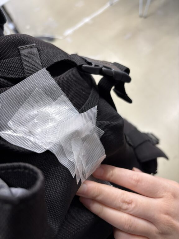 帰り際に仲の良いhさんの作品を見に行った。hさんは喋りながら僕の手やリュックに養生テープをぺたぺたと貼りつけてきた。